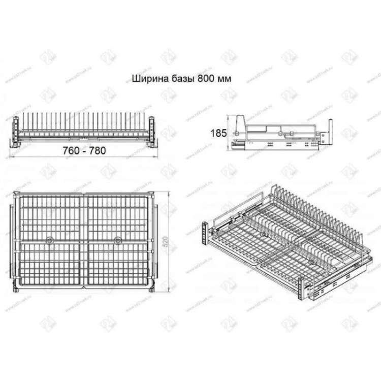 Выдвижная сушка для посуды в нижнюю базу Starax шир.800 (