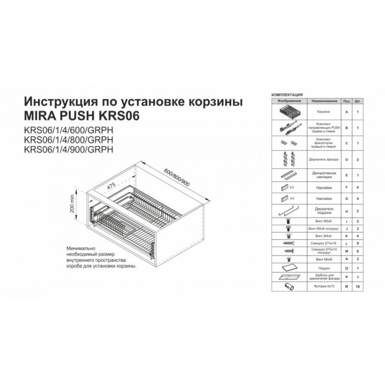 KRS06/1/4/600/GRPH (Выдвижная корзина-сушка 600 мм MIRA цвет графит)