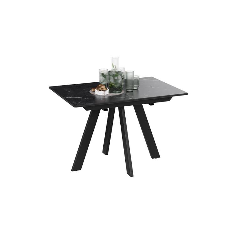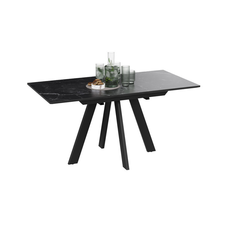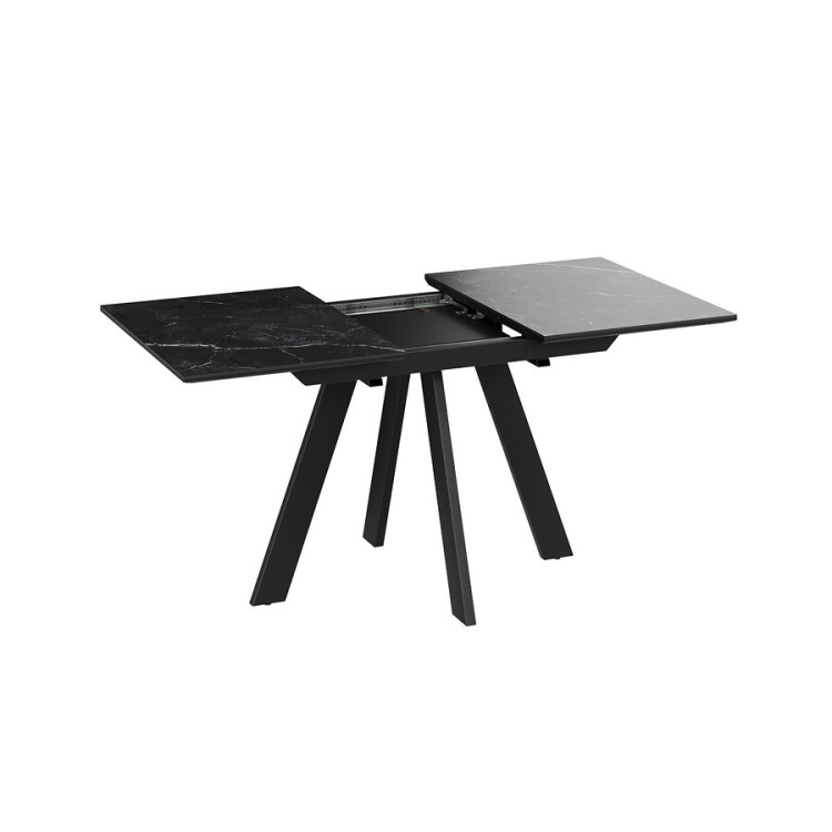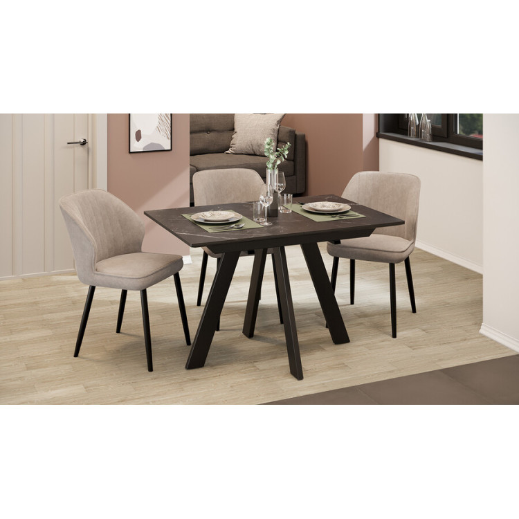 Материалы. Раздвижная столешница изготовлена из МДФ 22 мм и керамогранита 6 мм. Керамогранит отличается высокой прочностью, долговечностью, надежностью и термостойкостью. Он не требует особого ухода и не подвержен повреждениям при регулярном использовании. Опоры и подстолье выполнены из металла и окрашены порошковой краской «Черный муар».