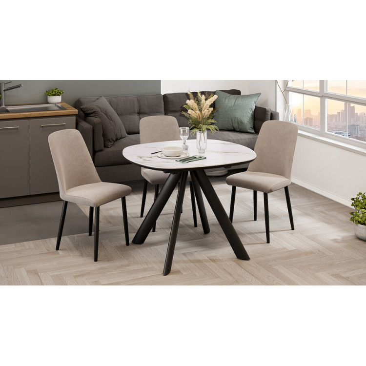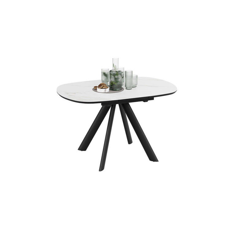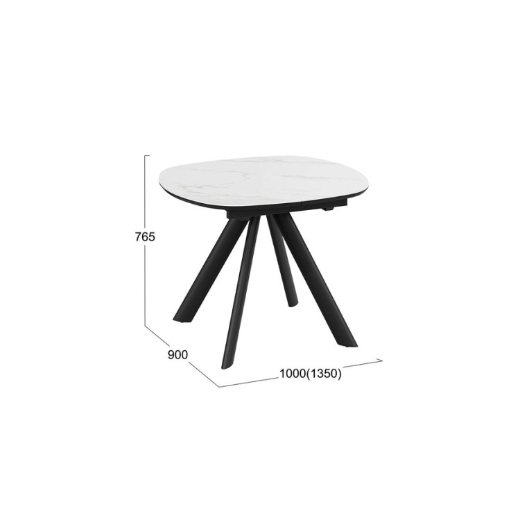 Стол обеденный раздвижной «Найтон» Тип 1 Черный муар, Керамика матовая белый мрамор