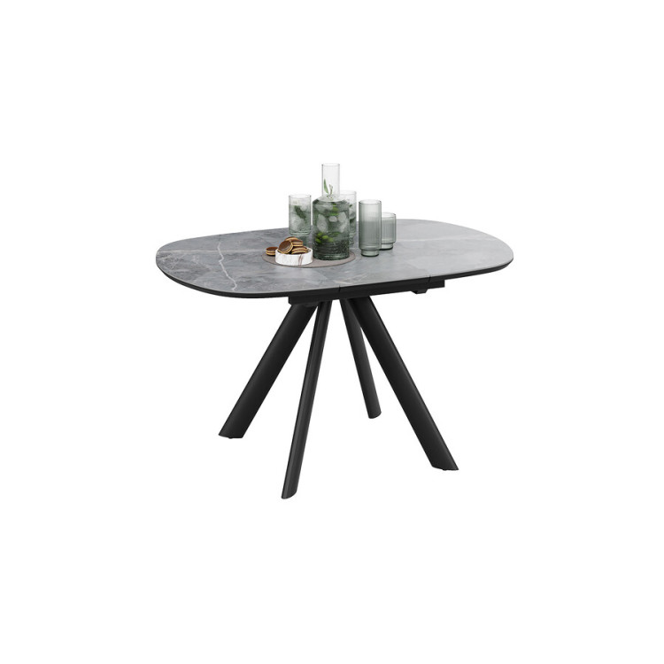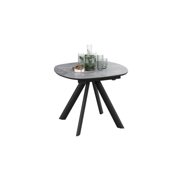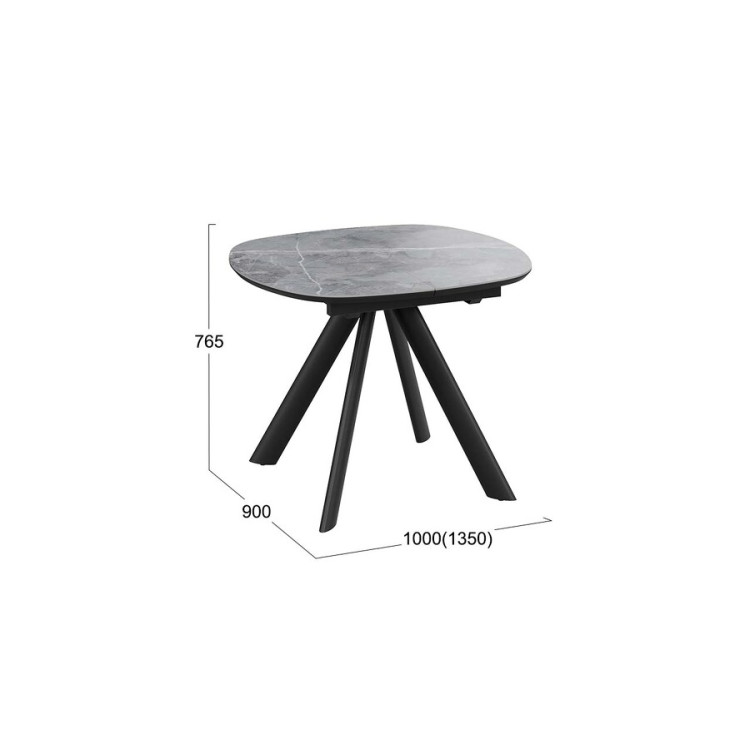 Стол обеденный раздвижной «Найтон» Тип 1 Черный муар, Керамика матовая серый мрамор
