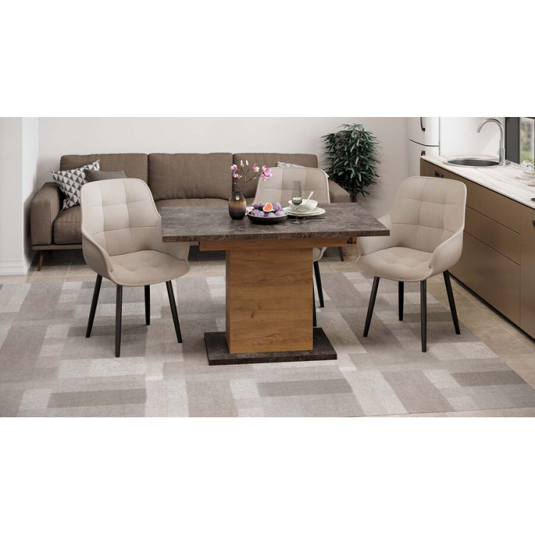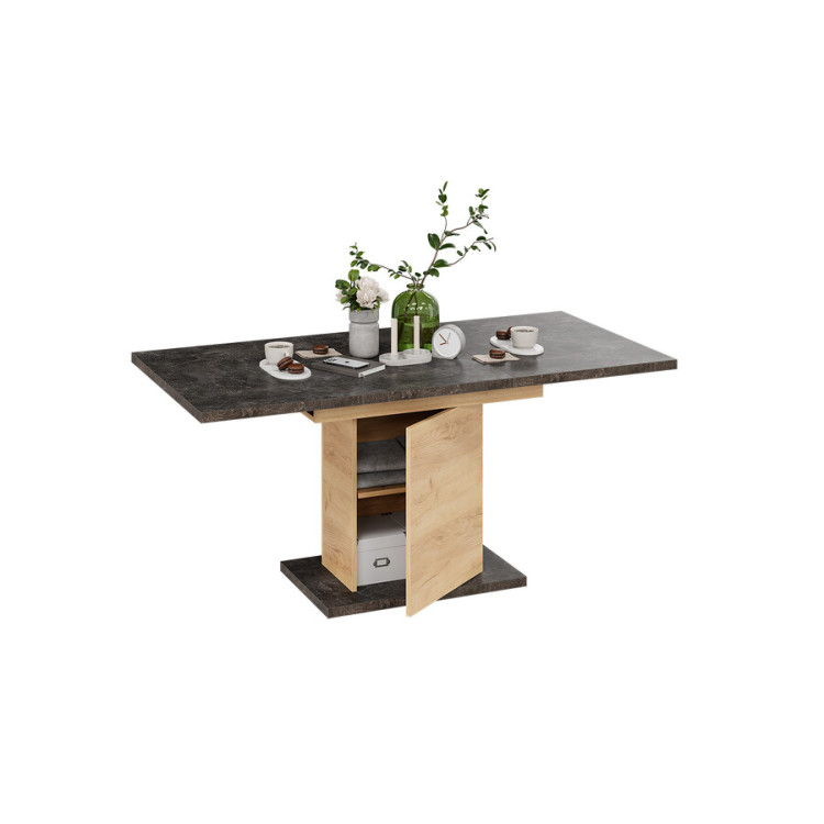 Функциональность. Стол «Детройт» Тип 4 имеет надежный ручной синхронный механизм раздвижения со вставкой, которая укладывается вручную. Это выручает в моменты прихода гостей, которых хочется разместить свободно и с комфортом. Наша новинка удивит Вас своей практичностью. Конструкция опоры этой модели предусматривает наличие ниши с полкой для хранения необходимых предметов за дверцами, открывающимися легким нажатием руки.
